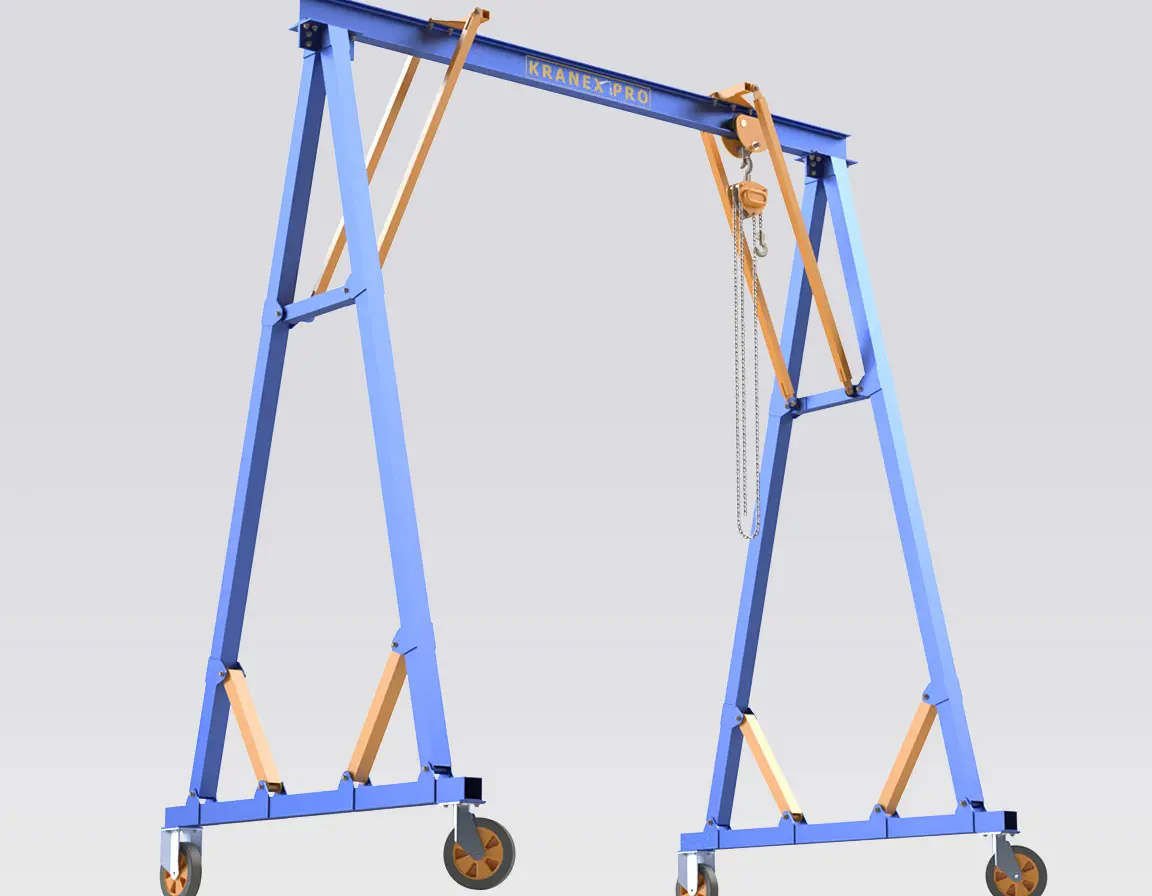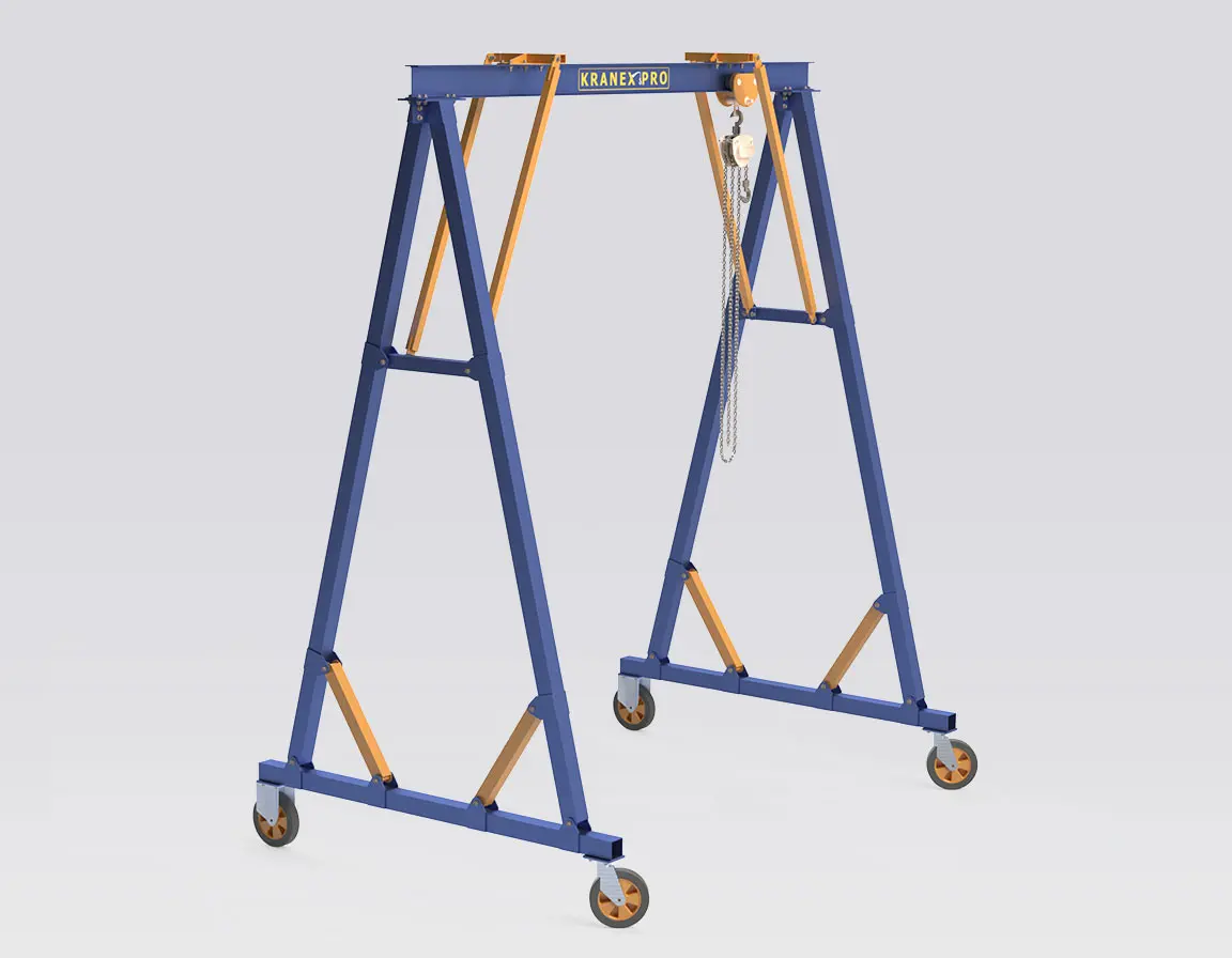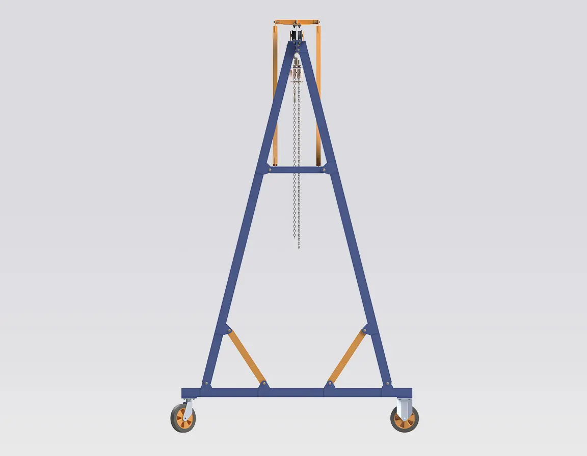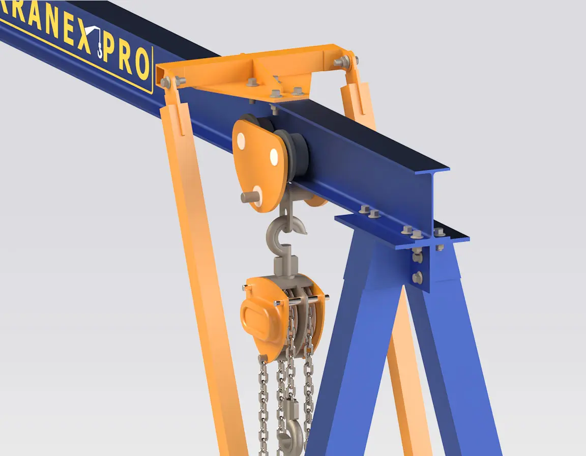 • Situations où l’on privilégie une grue portique relocalisable et facilement démontable plutôt qu’une installation de pont roulant fixe.