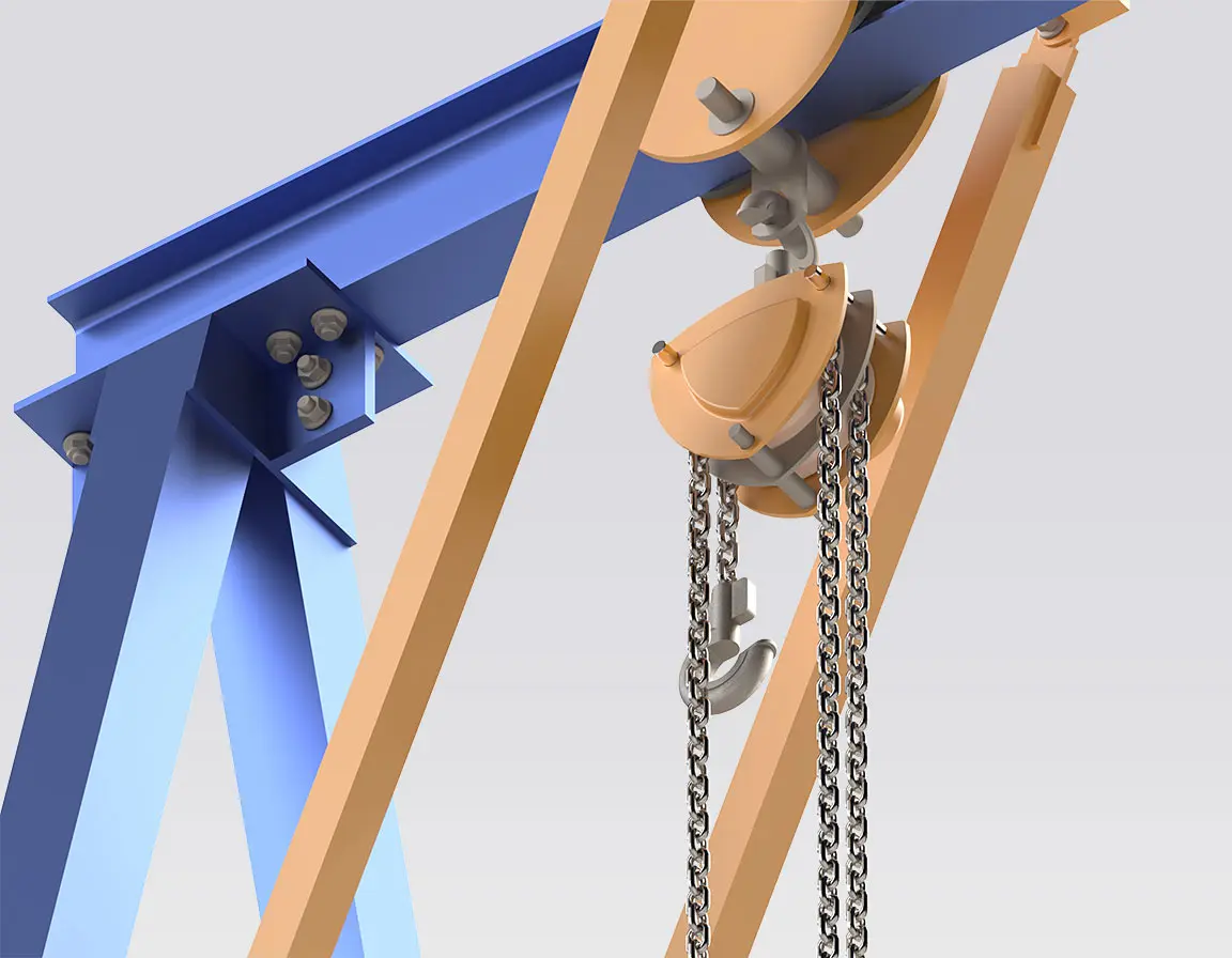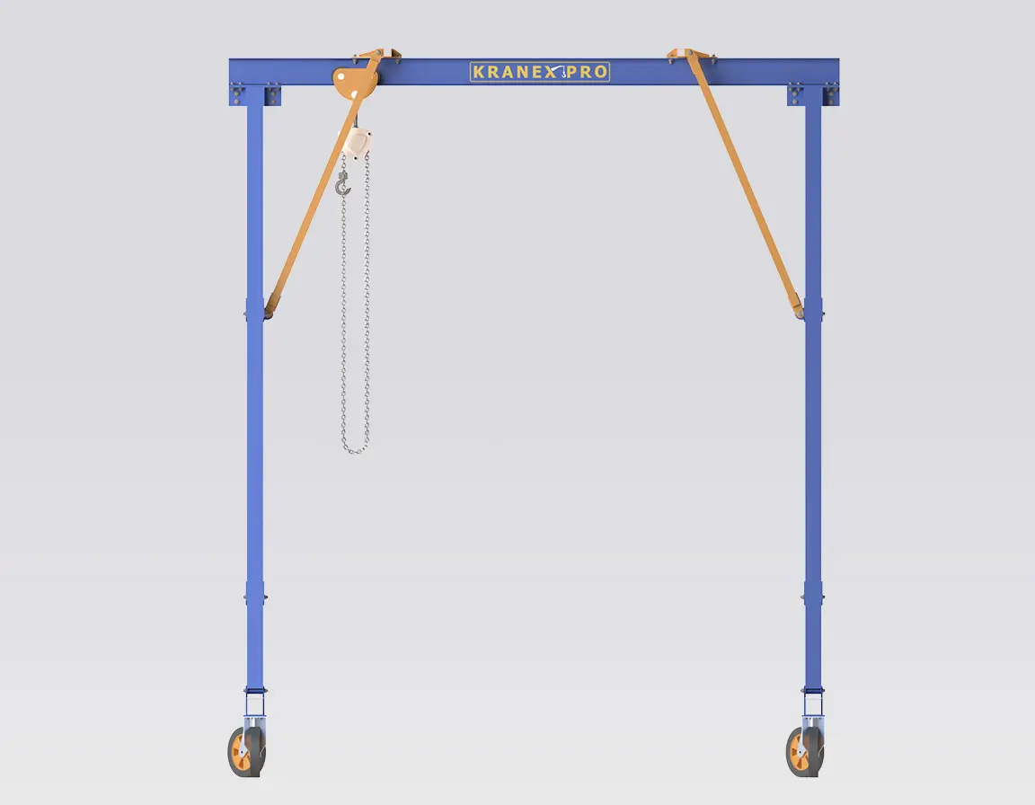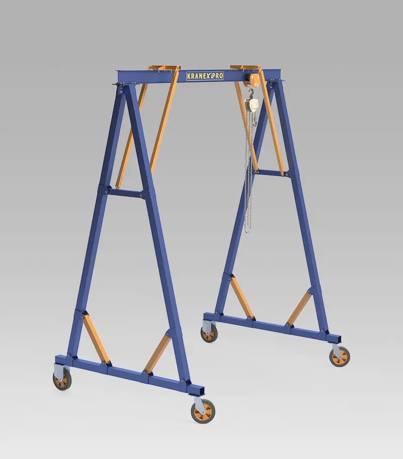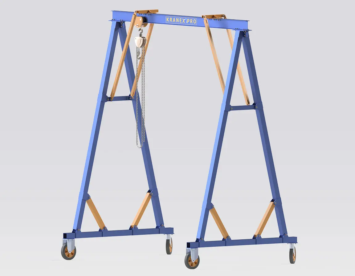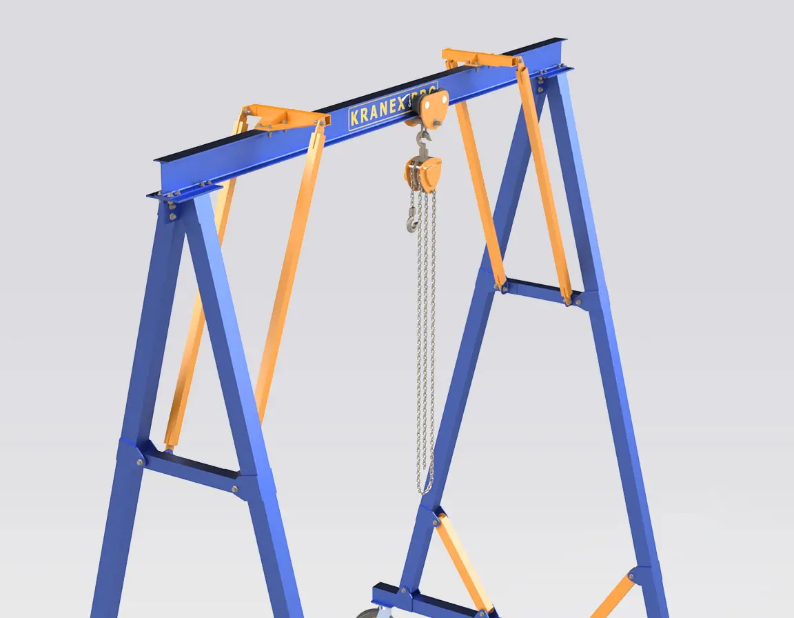 • Situations où l’on privilégie une grue portique relocalisable et facilement démontable plutôt qu’une installation de pont roulant fixe.